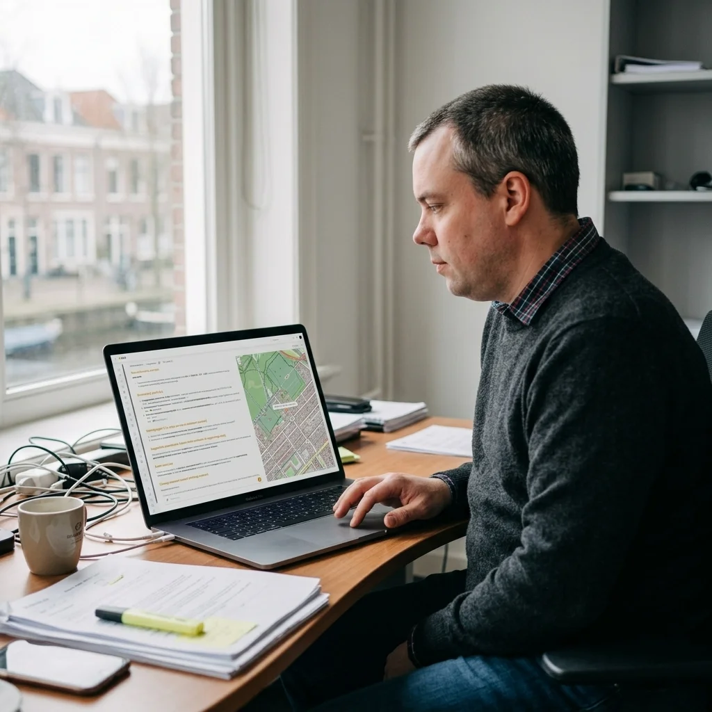 While the chatbot asks follow-up questions, it retrieves live data from PDOK, BAG, BGT and municipal regulations. Any Natura 2000 restrictions or aesthetic guidelines are incorporated immediately.