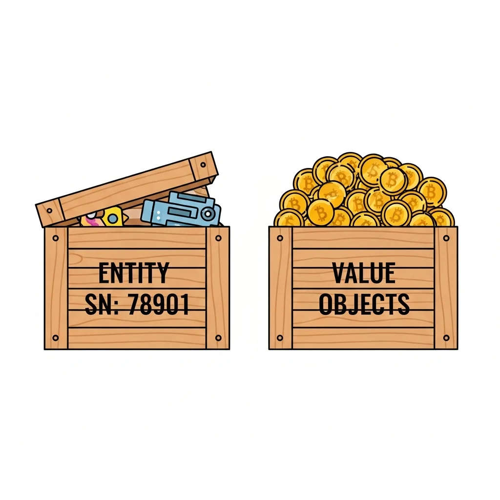 A value object represents a value without its own identity. Examples include money amounts, periods, addresses or email addresses. Value objects are immutable: if a value changes you create a new object. They are compared by value rather than by id, making them ideal for encapsulating domain logic such as validation rules or calculations.
