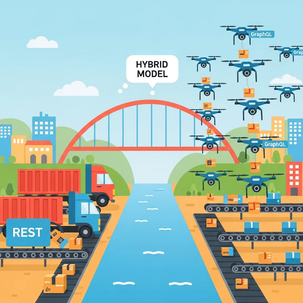 In modern systems hybrid models are common. Back-end services provide internal or external REST APIs, while a separate GraphQL layer is used as an aggregator for front-end clients. This GraphQL gateway combines data from multiple REST or database sources into a single uniform schema. It enables step-by-step adoption without replacing existing REST infrastructure in one go.