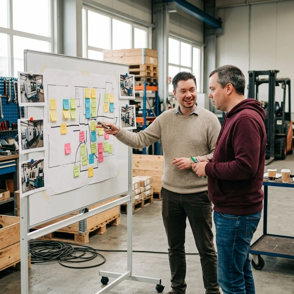 Where are the biggest opportunities? We walk the shop floor with you and identify processes with the highest impact: unplanned downtime, quality issues or time-consuming calculations.