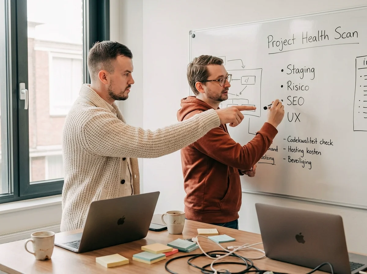 We start with a health scan: code quality, hosting, security, UX and SEO. One thing we often notice is scale-ups forgetting to secure their staging environment - embarrassing yet easily fixed.